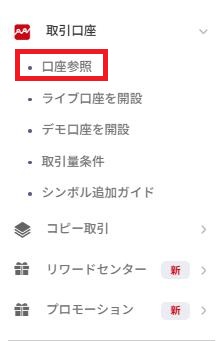 資金の移動が完了しましたら、左のメニューから【口座参照】クリックしていただき