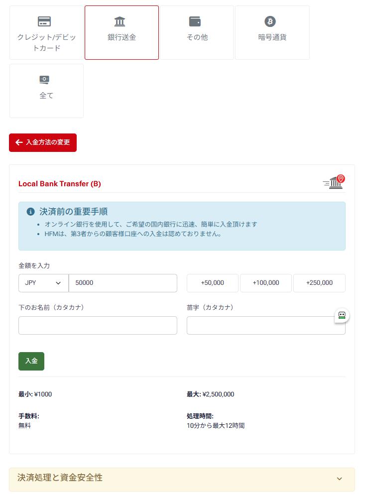 銀行送金の場合は、HFMが営業日及び営業時間内であれば