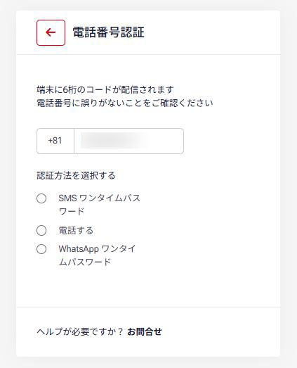 選んでいただきましたら、電話番号認証ページに移動しますので