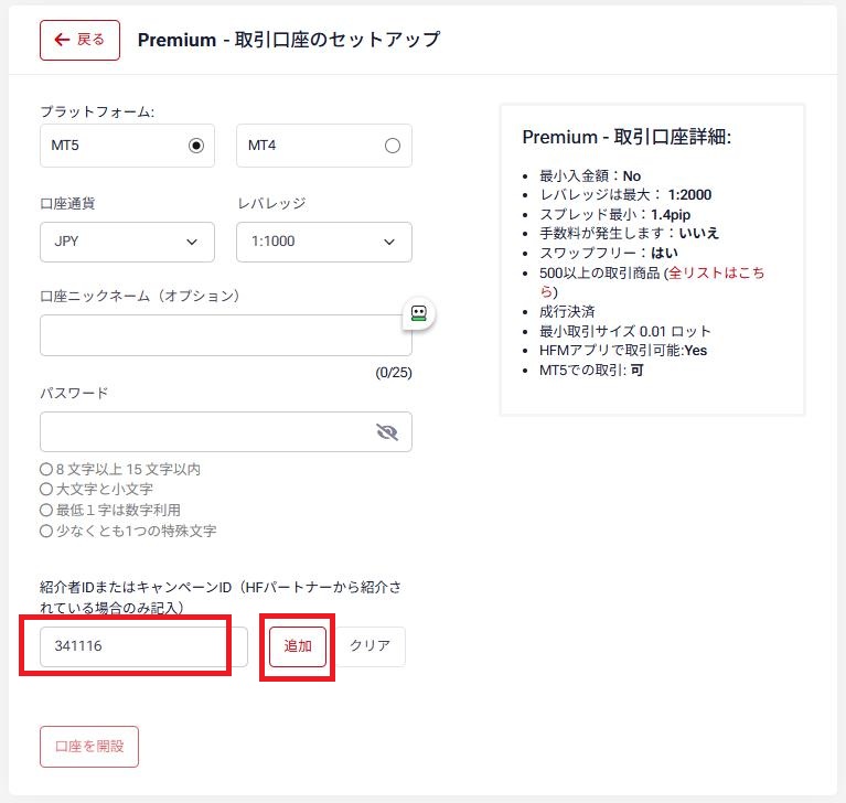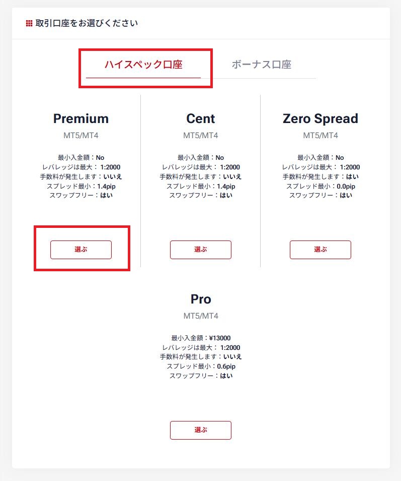 ハイスペック口座の【Premium】を選んでください。