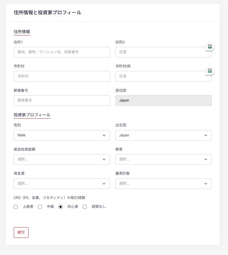必要事項を入力していただき、【続行】をクリックしてください。