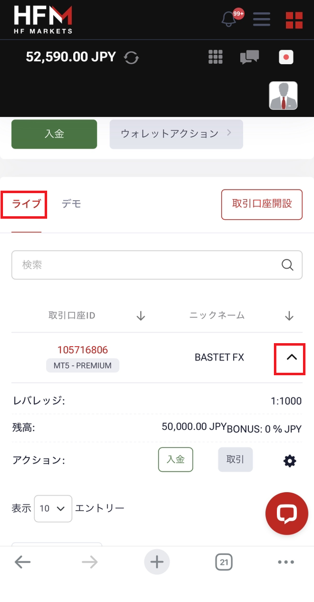 50,000円以上をご入金してください。